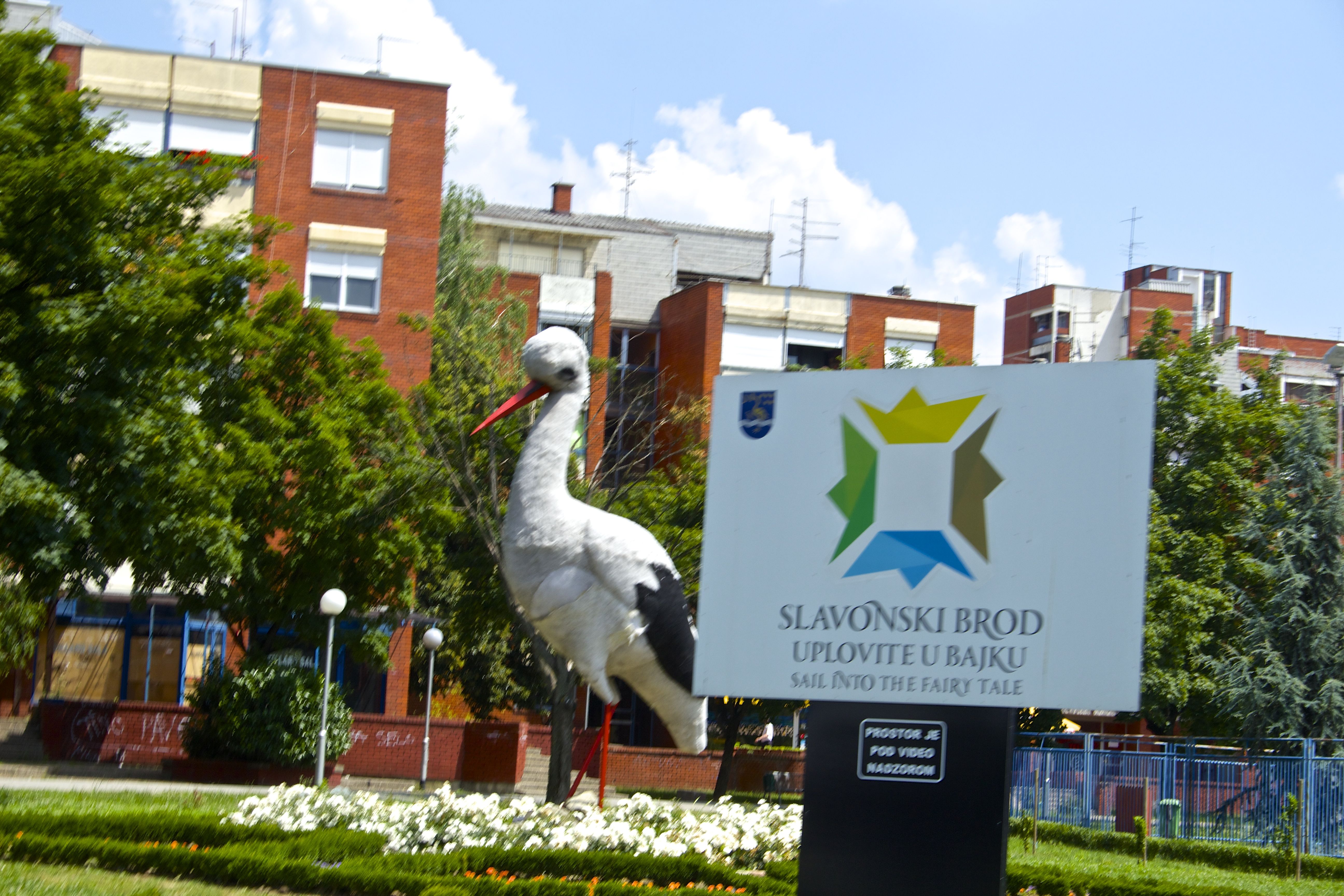 I am not sure about the fairy tale, but Slavonski Brod is a sleepy, leafy town on the River Sava which looked quite pleasant on a hot afternoon, with even the Communist era flat blocks humanised by children playing happily in their paddling pools. But I did notice a significant number of working age males around, clearly not working. Gora, the 30-something bar-tender at the Iguana Café/Music bar, told me that the EU was not working for them. He has a wife and two children. His apartment costs him 3,000 kuna a month, just about what he takes home from the bar job. He has to do a second fulltime job to make enough money for them to live on. So the optimistic EU billboard standing in front of these flats represents a triumph of hope over reality, and the persistent failure of trickle-down economics, where the trickle never seems to reach those who need it most.