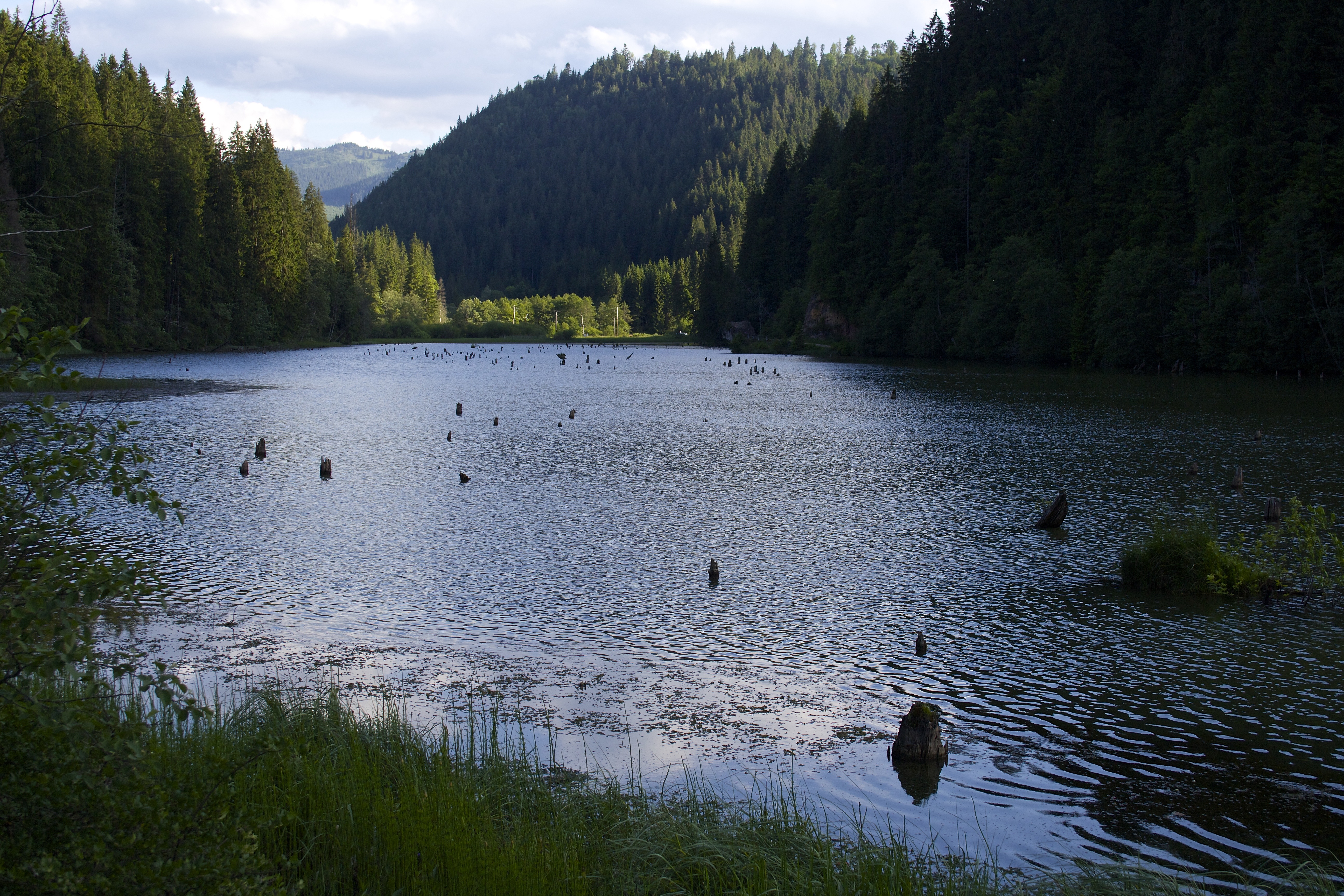 But actually the new Hotel and Restaurant Lac Rosu has over an acre of its own manicured grounds, away from the madding crowd and, with the coach tours gone, I had the lakeside walk virtually to myself this evening.