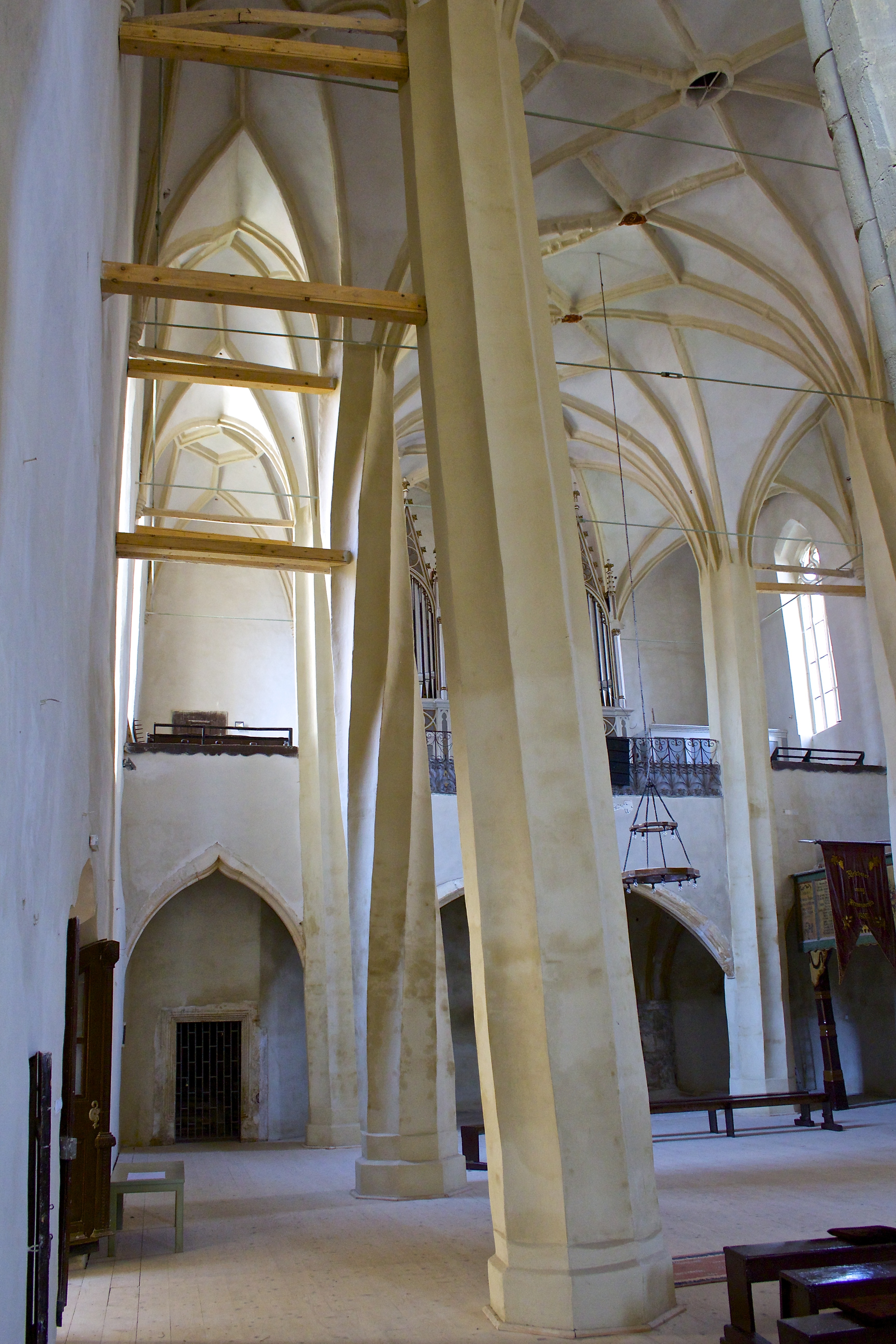 These villages are chiefly famous for their fortified churches. Whereas Stefan cel Mare built fortified monasteries to withstand the Turks in Moldavia, the Saxons were apparently imported as a defence force and the churches built as local fortresses. Of the three I saw, the most impressive was at Mosna, with its extraordinary outward leaning nave pillars, the work of master builder Andreas Lapida between 1501 and 1520.
