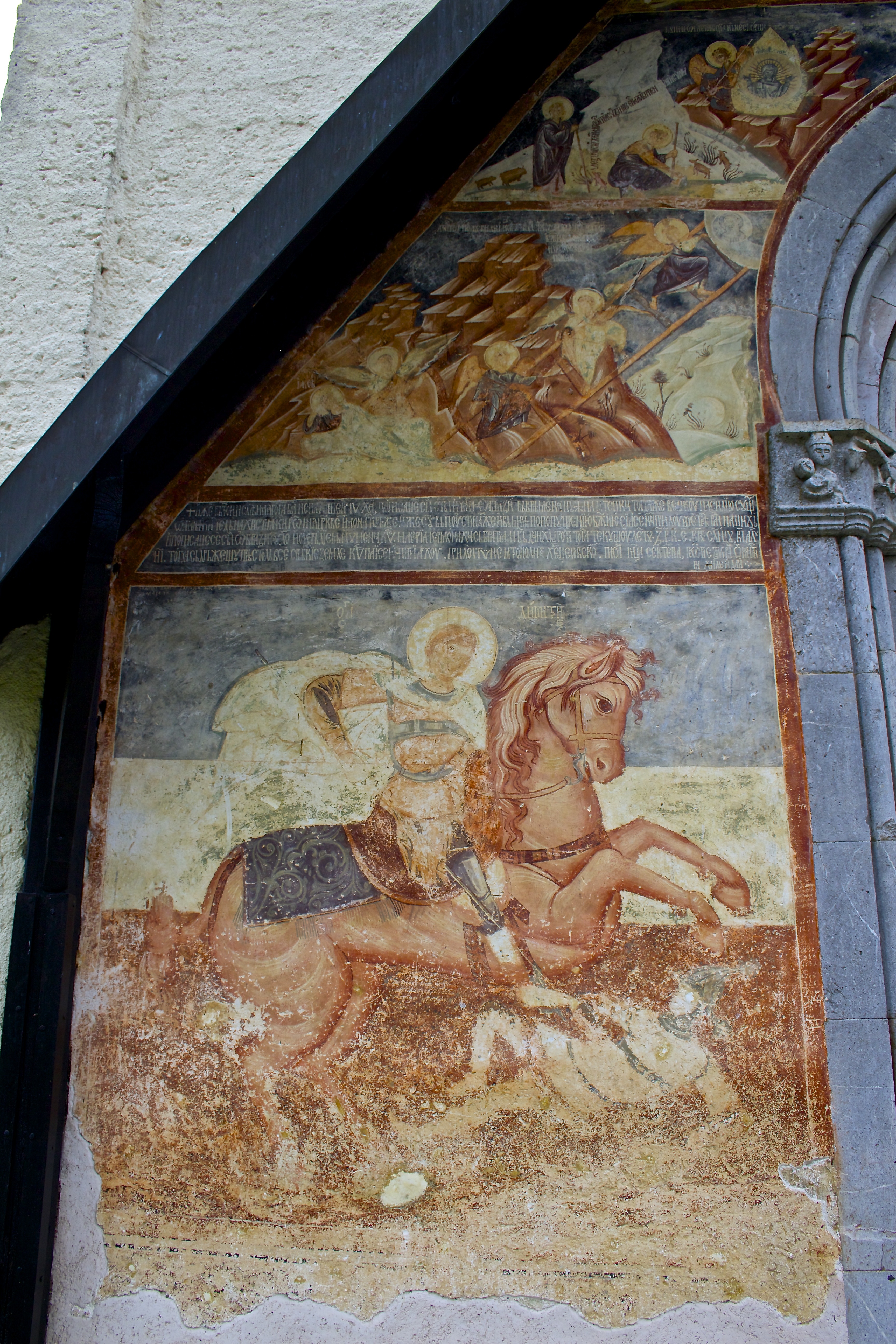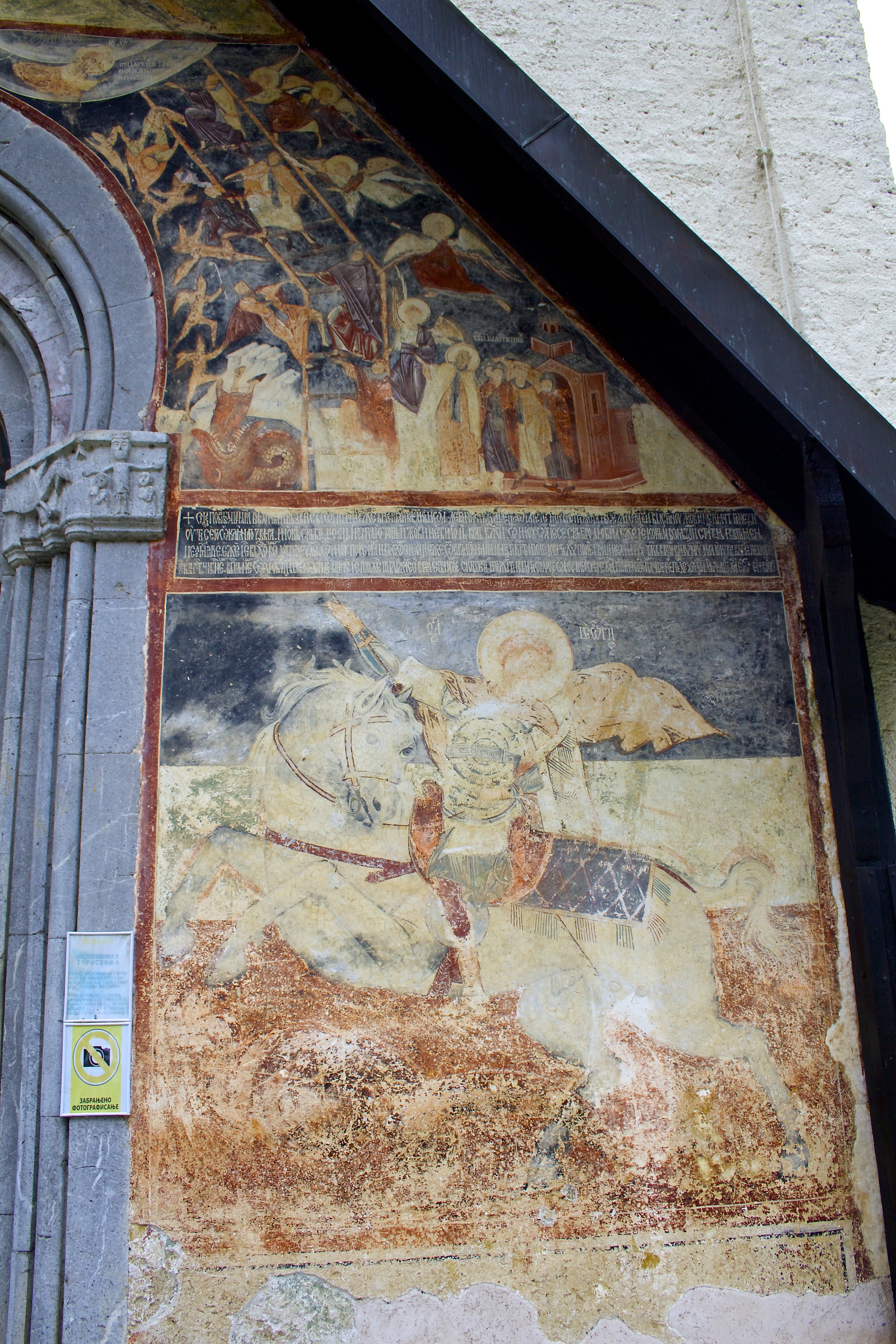 On the way here across the mountains, there are another superfluity of orthodox monasteries. One I happened to stop at revealed that Moldavia was not alone with having had painted frescoes on the exterior walls.