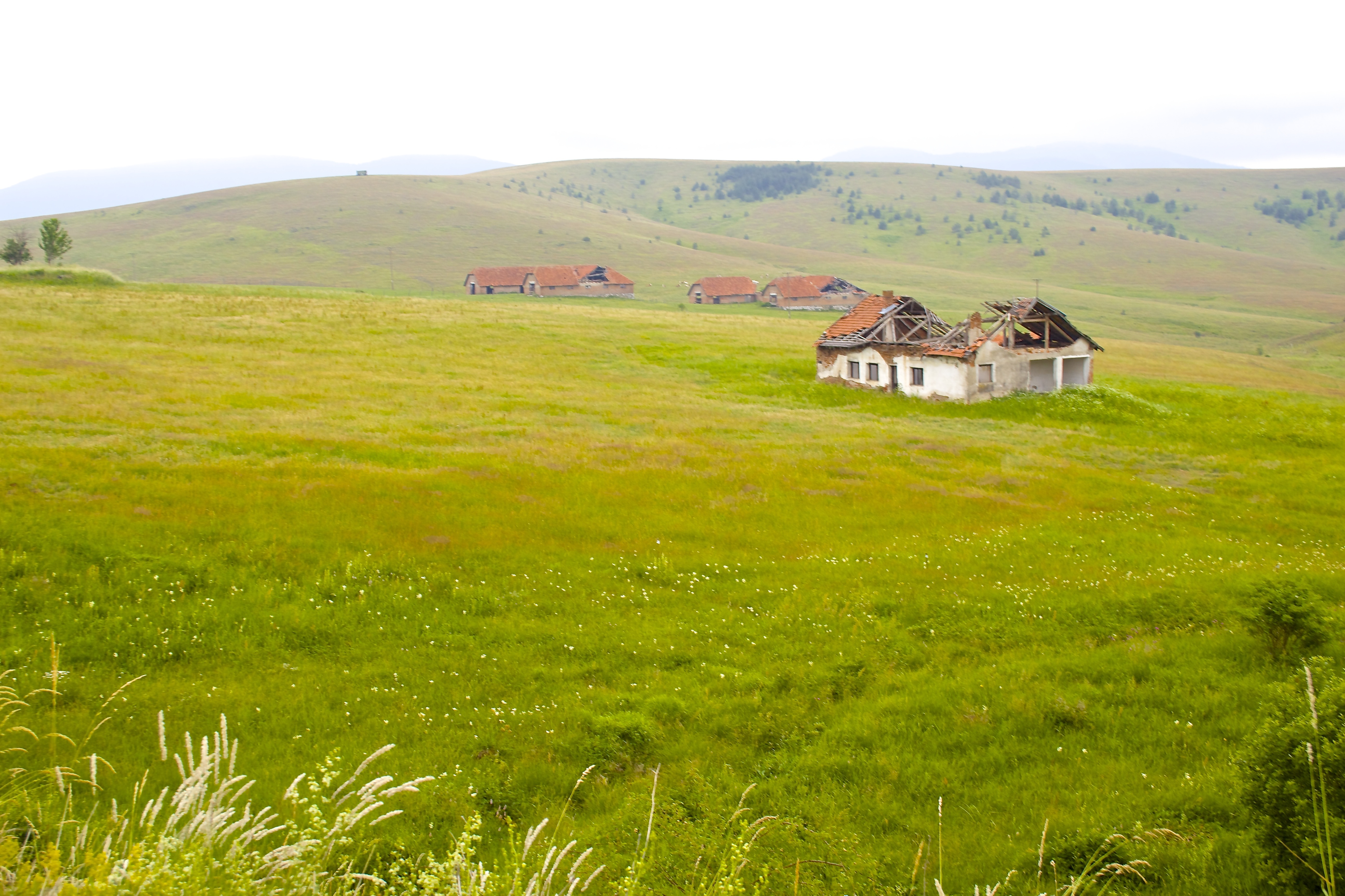 It is a simple trope that such hard ground produces hard people, but I feel there is something in it. Uzice is also gateway to the Zlatibor country park, a mountain area with hotels and other attractions. It seemed to me a rather desolate expanse of hotels in otherwise open country, with deserted open air swimming pools looking as attractive as the Arctic winter on this glowering, cold midsummer’s day. The area is also a winter ski resort, when I expect the weather is more appropriate. The road crosses a bleak mountain plain of deserted farm buildings.
