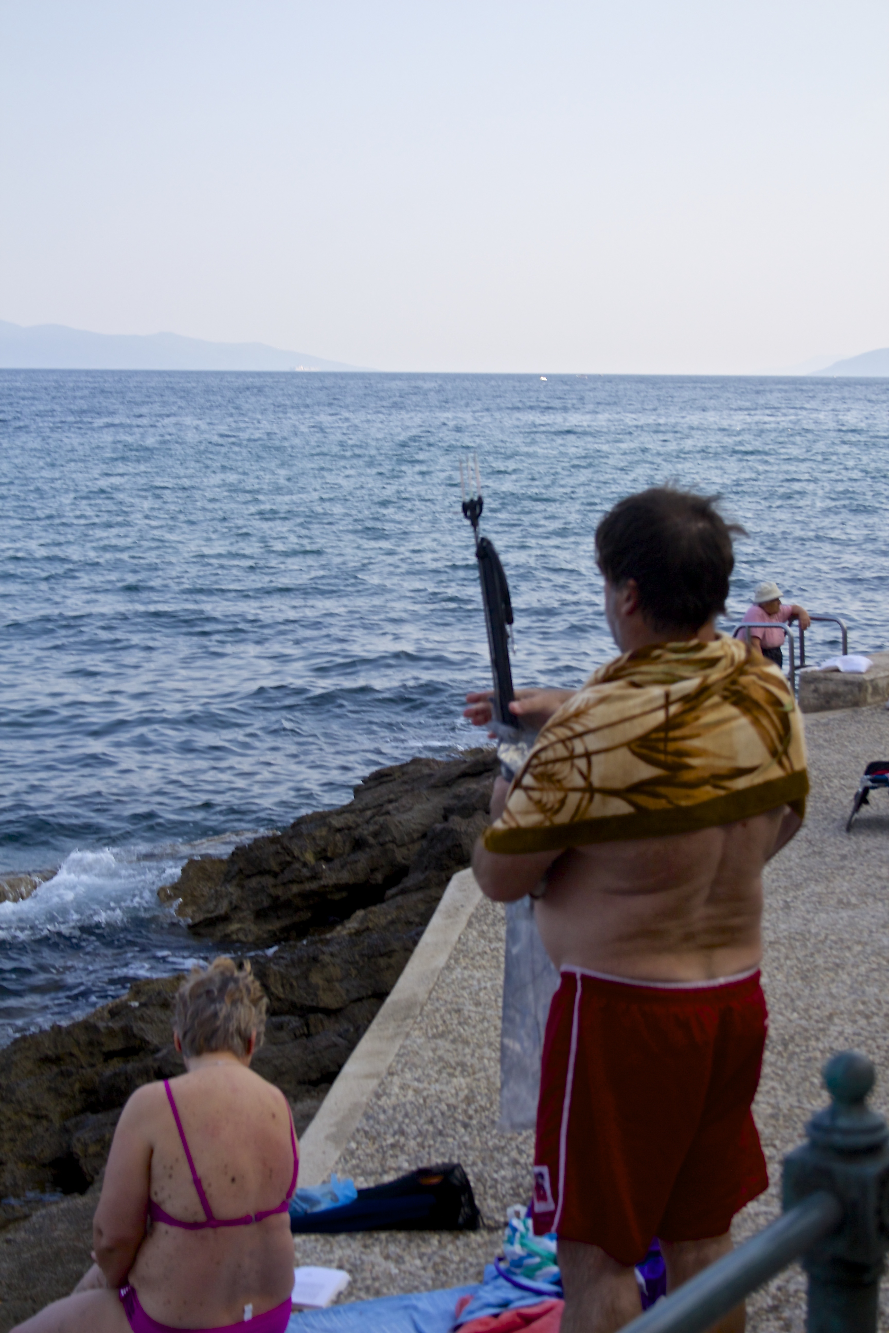 Plus ça change, plus c’est la même chose. One change which has endured is that these bathing platforms, which make up for the lack of beaches on this rocky coastline and which were clearly originally built for the individual villas, still enjoy the impact of Tito’s communism and are freely open to all, even those attached to the Grand Hotel. The only problem is that the locals favour fishing with harpoon guns, whose trident spears could leave an unpleasant impact upon a bather’s body. One can only hope that they are lousy shots.