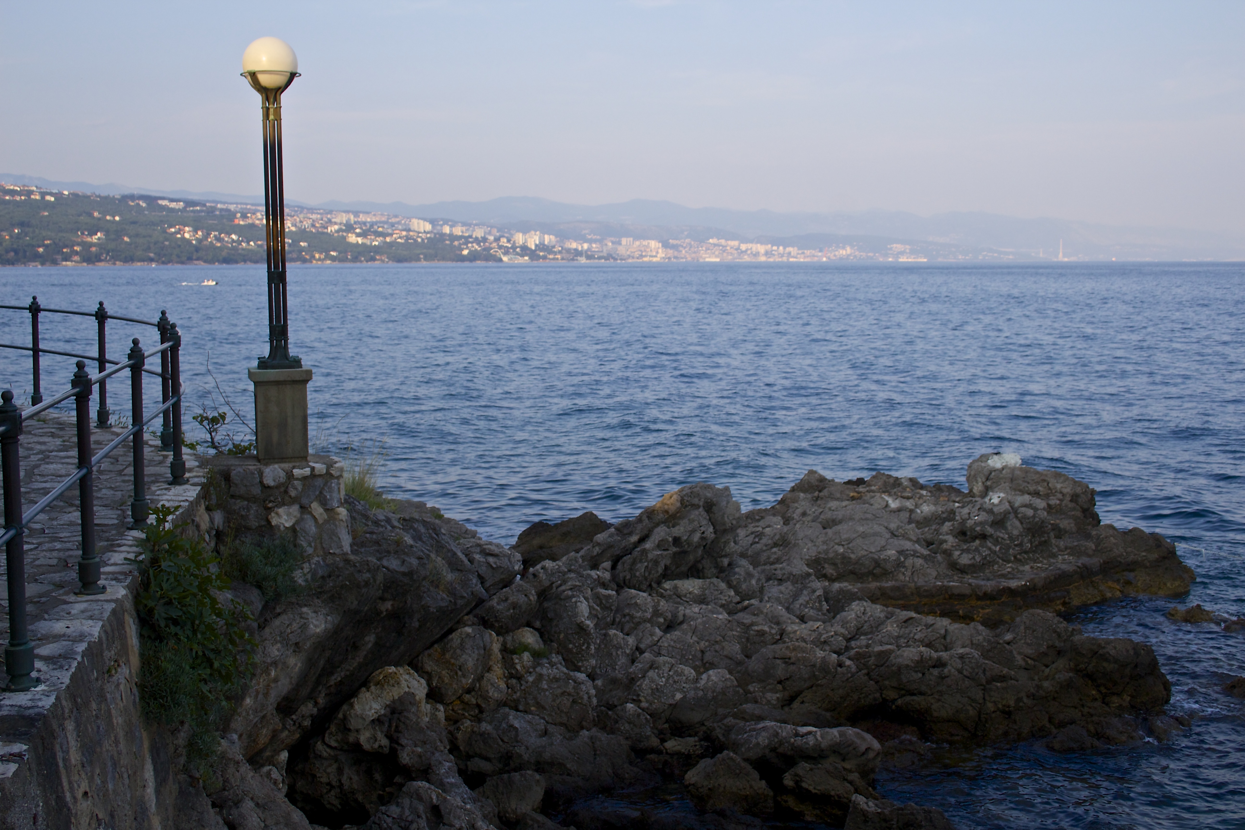 This is the eastern end of the Lungomare, the Franz Joseph I coastal path which runs through Opatijva to Lovan, a nineteenth century promenade connecting the private villas of the Austro-Hungarian nobility who summered here.